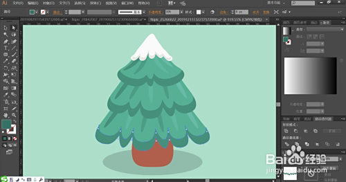 利用网格东西点击一下小圣诞树的叶片与树干让其呈现渐变色,树叶上面的亮光用滤色模式的绿色填充并设置当作半透明的结果。暗光用半透明的绿色填充,暗影用黑色填充并同样设置当作半透明的结果,完当作小圣诞树图片设计。