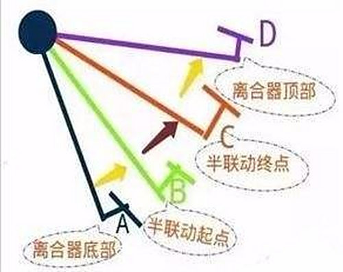 二慢,当感受到聚散器压盘逐渐连系至半联动后,踏板抬起的速度起头放慢,在半联动到完全连系的过程中,聚散器踏板是慢慢抬起的。是以称为二慢。