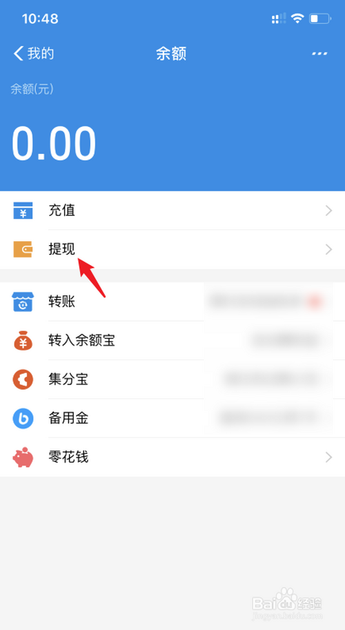 点击后,选择提现的选项进入。