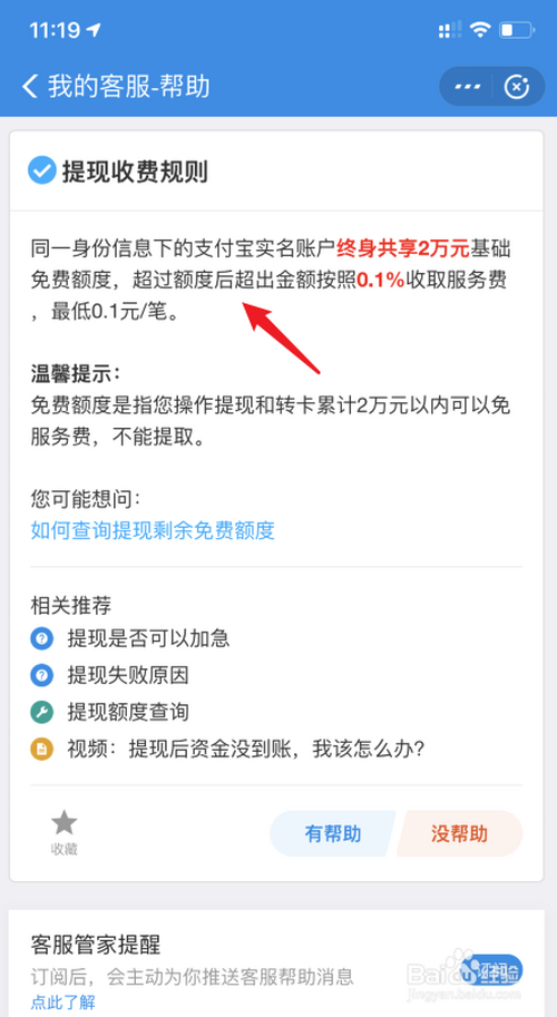 1.支付宝统一身份的账户共享2万免费提现额度,超出后,则需要收取0.1%的手续费。