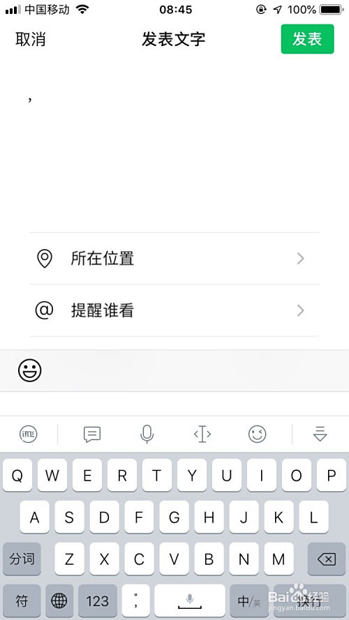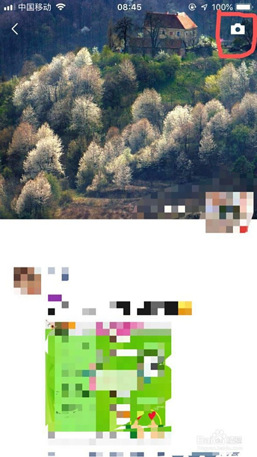 然后长按右上角相机图标,待呈现颁发文字框时松开。