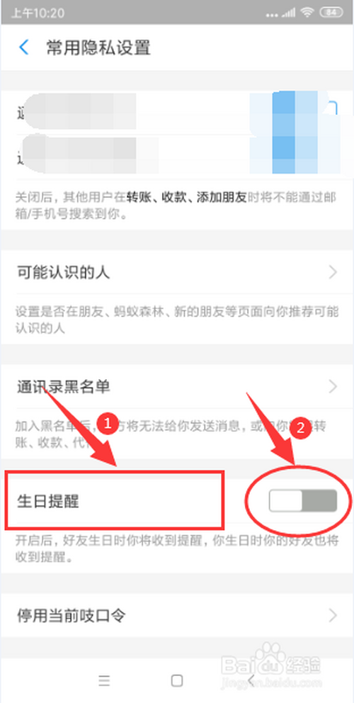 页面更新弹出后,滑动屏幕往下拉,找到“生日提醒”这一栏,滑动右边开关按钮,打开开关即可。