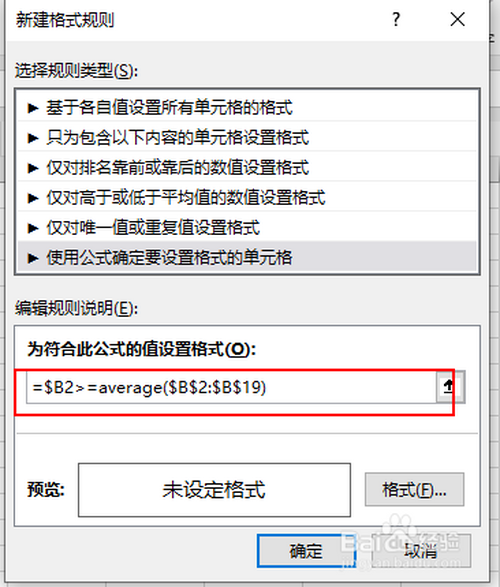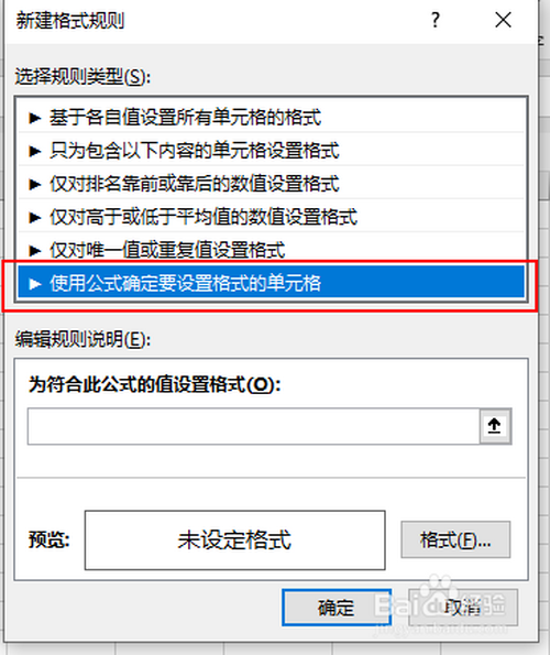 在新建格局法则对话框中,选择利用公式设置法则
