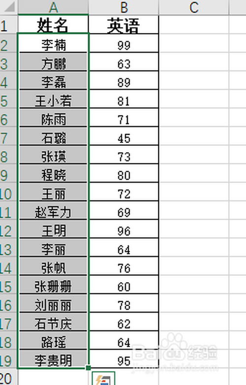 起首,选中姓名数据区域