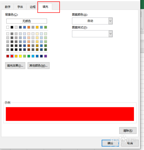 然后再点击格局。选择为填充格局,这里我们选择红色