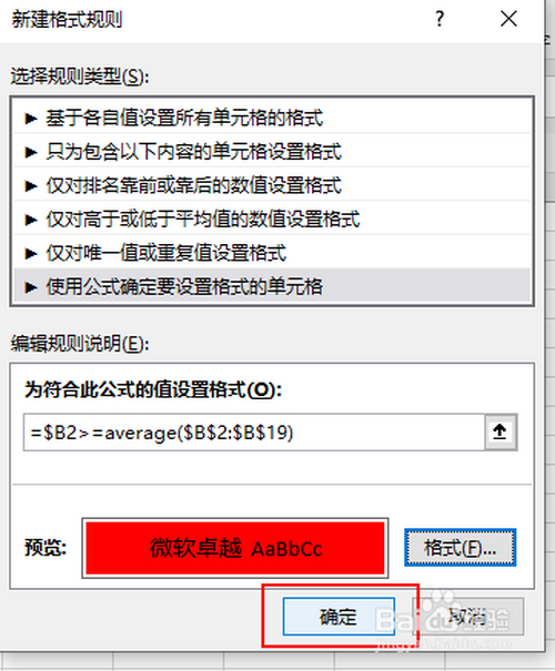 在公式输入框中输入如图所示的公式。寄义为从第一个员工起头判定成就是否大于等于所有成就的平均值