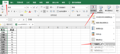 然后在东西栏中选择起头选项卡下的前提格局,选择新建法则