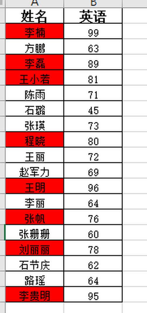 则所有成就大于等于平均值的学生姓名已全数标识表记标帜显示