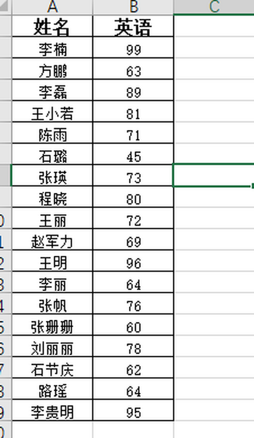 有如图所示的数据表,需要将英语成就大于等于平均值的学生姓名显示出来