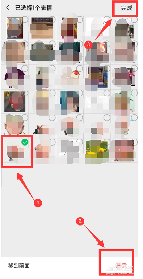 8. 在要删除的脸色包右上角的圈里打钩,接着点击右下角的“删除”,最后点击右上角的“完当作”即可