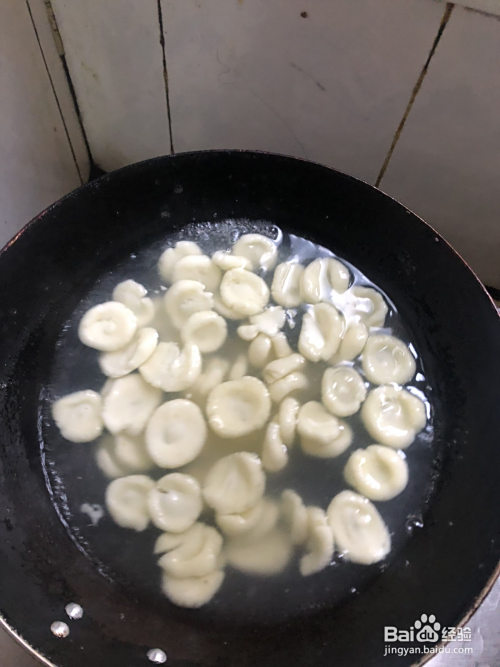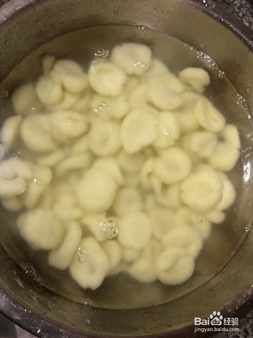 在锅中放入水,将做好的土豆窝窝放入水中,焯水三分钟;