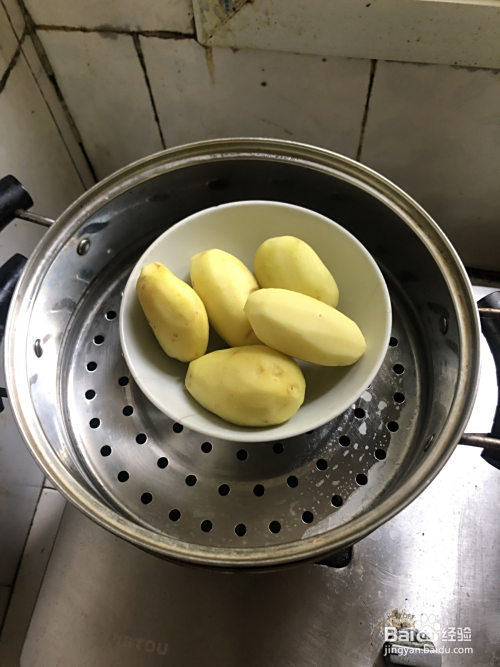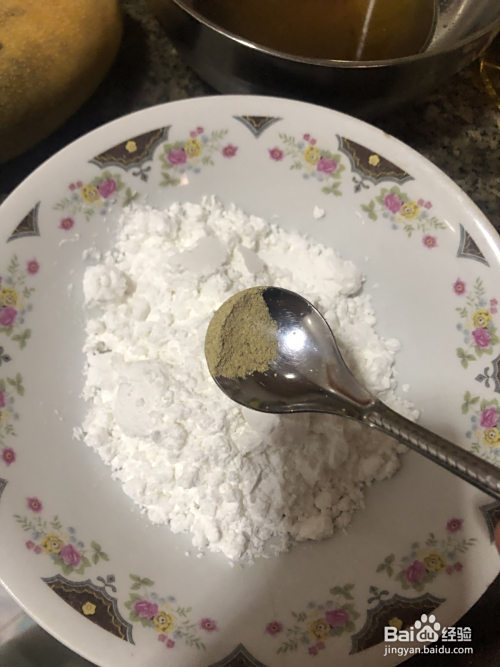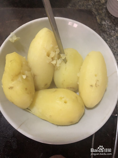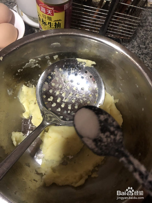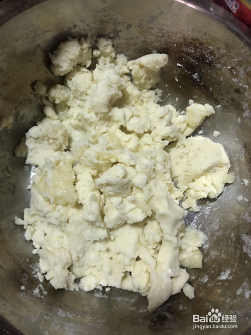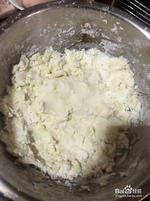 将土豆泥放入灰面中,插手少量水,揉匀;