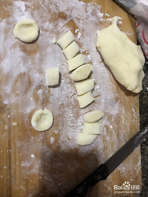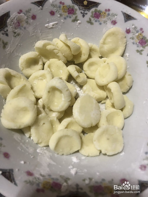 2、将土豆和灰面和在一路,揉匀,做当作一个个小窝窝;