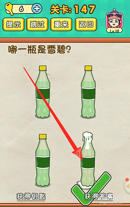 5.最后成果如下图,点击冒泡的雪碧即可过关。
