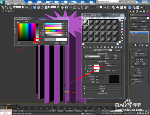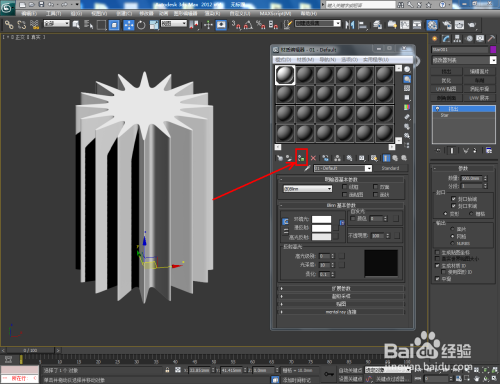 点击【材质编纂器】,按图示设置一个白色材质球并附加给模子即可。这样我们的双圆十六角柱就建造完当作了,赶紧尝尝吧!
