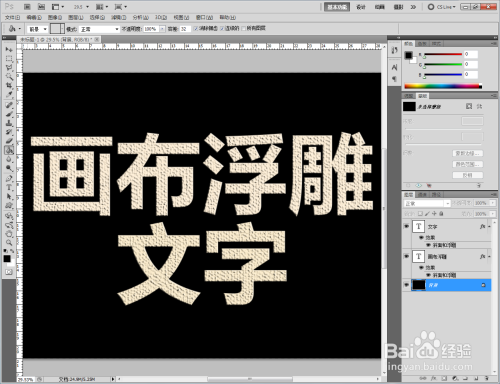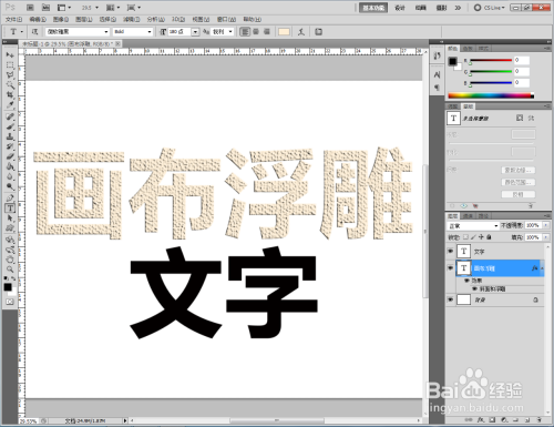 点击【文字东西】按图示设置好文字各参数后,完当作“画布浮雕”和“文字”文字建造;