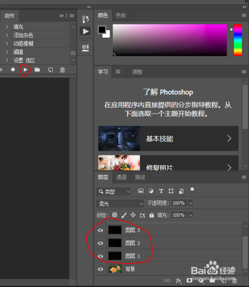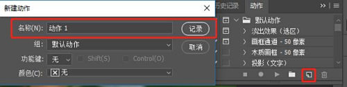 新建动作。在菜单栏依次点击窗口——动作,打开动作面板,点击新建动作按钮。