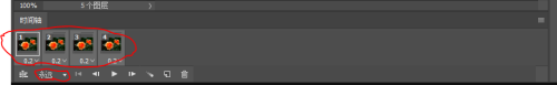 调出时候轴。选择窗口——时候轴。在时候轴面板上点击建立帧动画。建立三到四帧动画,设置每帧动画的时候和0.2S,永远。