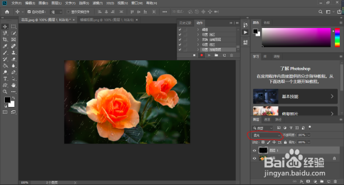 将图层1的图层夹杂模式设置当作柔光,这个时辰呈现雨滴结果。