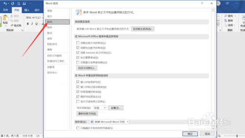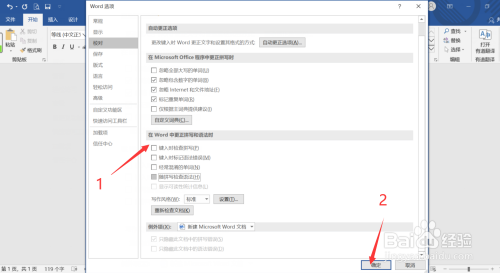 4、将【在word中更正拼写和语法时】下列勾全数去失落,最后点击【确定】