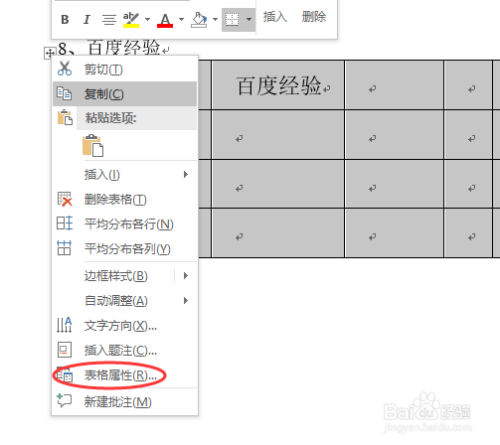 1、右键选择【表格属性】;