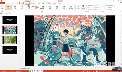 然后再设计每张作品的动画以及幻灯片的切换动画,点击保留就可以了。