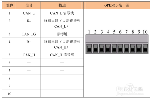 USBCAN-E-P有1路CAN,经由过程OPEN10毗连器与现实的CAN-bus收集进行毗连。引脚界说如下。