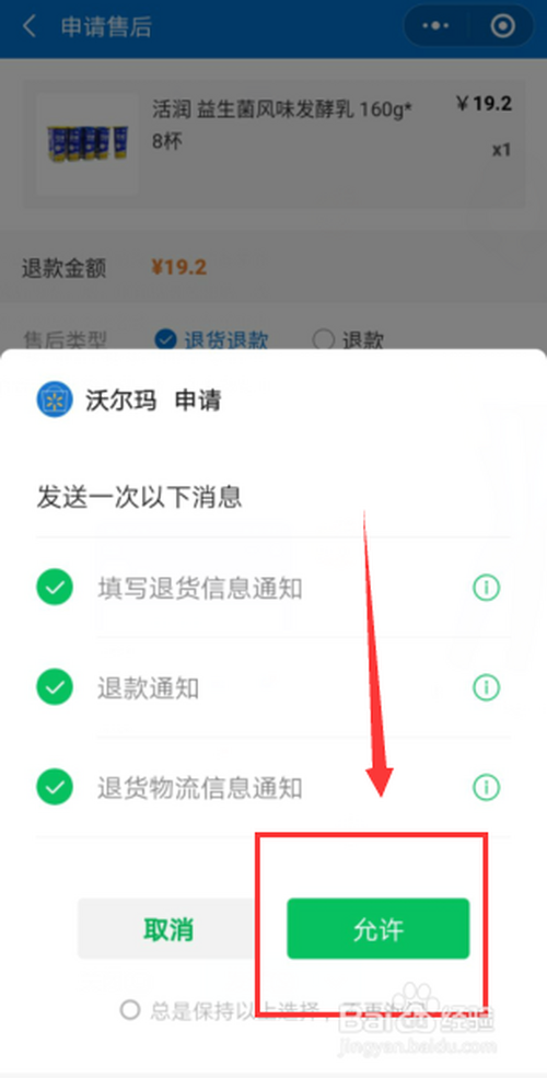 6、弹出售后信息反馈渠道选择,点击许可即可。