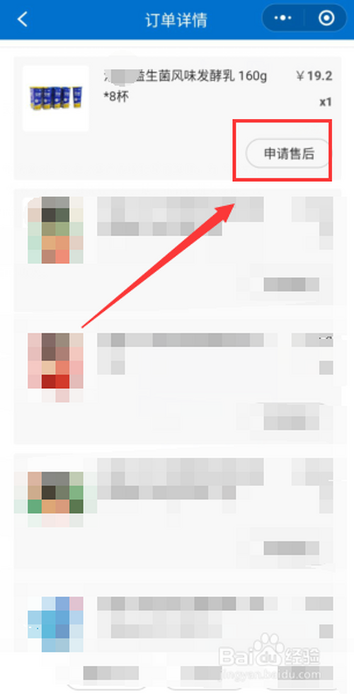2、进入订单界面,点击需要退货的商品地点订单信息。