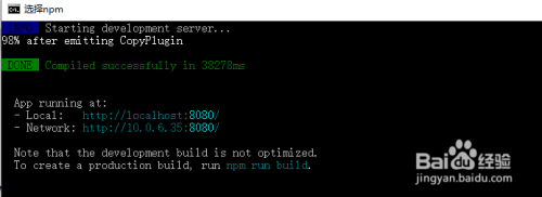 加载完当作后,将提醒 1.cd XXX 2.npm run serve。