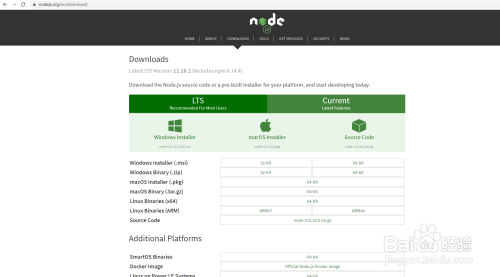 先去下载node.js,node.js半斤八两于起到编译器的感化,下载地址:https://nodejs.org/en/download/ ,下载完后进行安装。