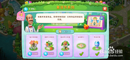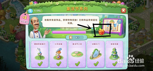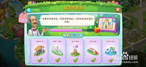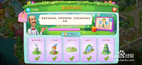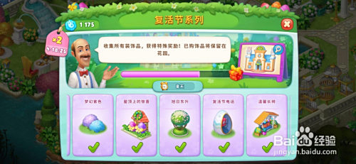 总共需要采办的装饰品一共是24件,下方这些已经画上对勾的暗示已经采办啦。