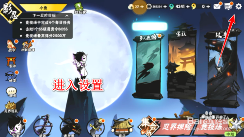 起首,我们点击进入游戏的本家儿界面,点击进入之后点击右上角打开设置。