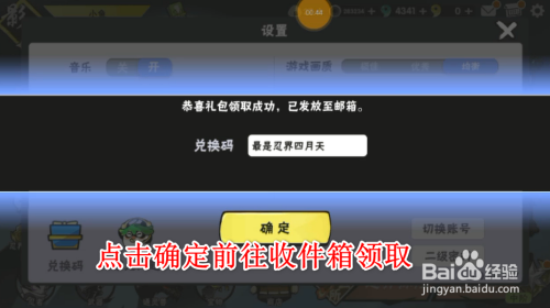 点击确定之后,系统提醒我们礼包发放当作功,前去收件箱领取。
