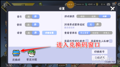 在设置区域,我们点击左下方的兑换码按钮,进入兑换码窗口。