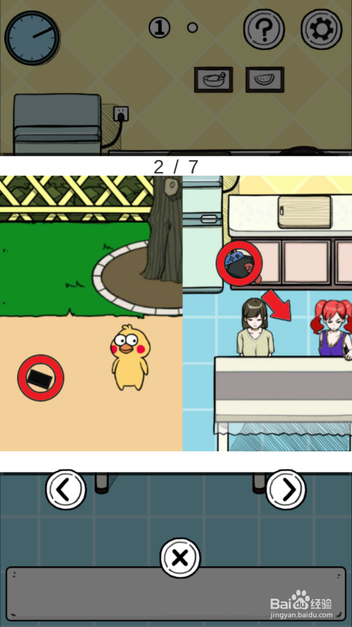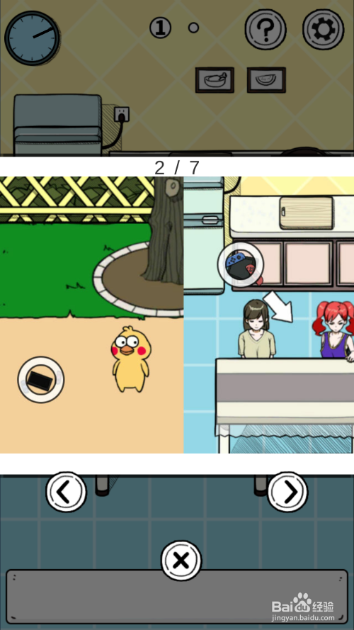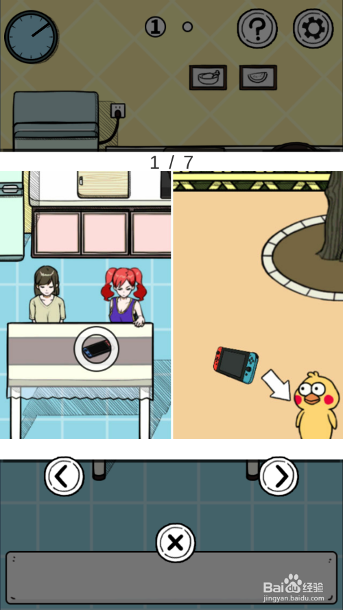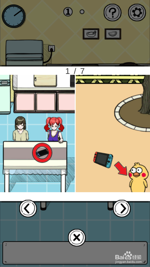点击桌子上的游戏机并把游戏机递给小鸡,如图所示: