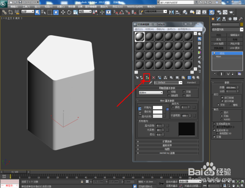 点击【材质编纂器】,按图示设置一个白色材质球并附加给模子即可。这样我们的圆角五边柱就建造完当作了,赶紧尝尝吧!