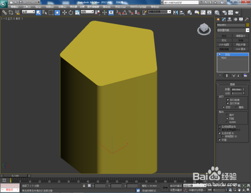 选中圆角五边形,点击【点窜】-【挤出】,按图示设置好挤出的各个参数,绘制出一个圆角五边柱模子;