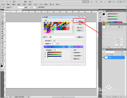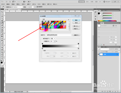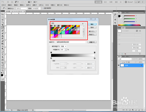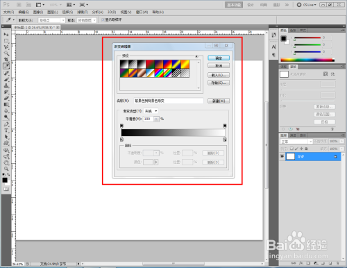 点击【渐变东西】-【线性渐变】,点按【可编纂渐变条】,弹出渐变编纂器;