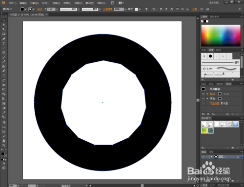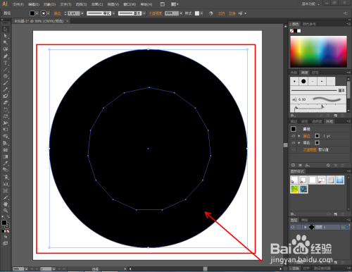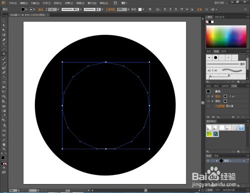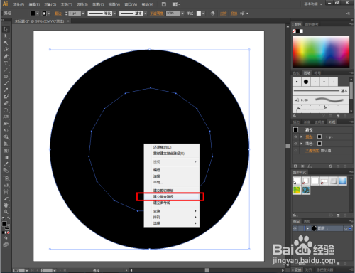 点击【选择东西】,同时选中圆形图案和十五边形图案。点击鼠标右键-【成立复合路径】,将两图案路径进行连系;