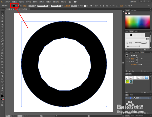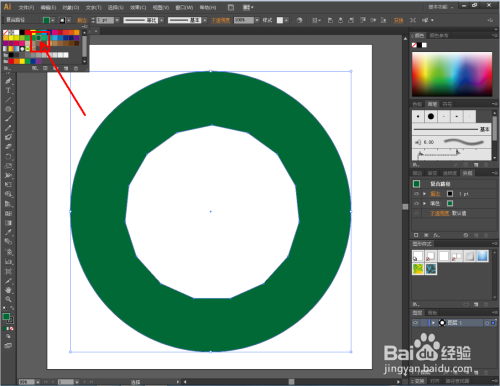最后,点击【色板】,将图案设置为想要的颜色即可。这样我们的镂空十五边形圆形图案就建造完当作了。