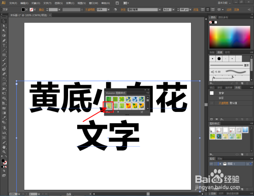 选中文字,点击【黄底小白花】,完当作黄底小白花文字结果的建造。