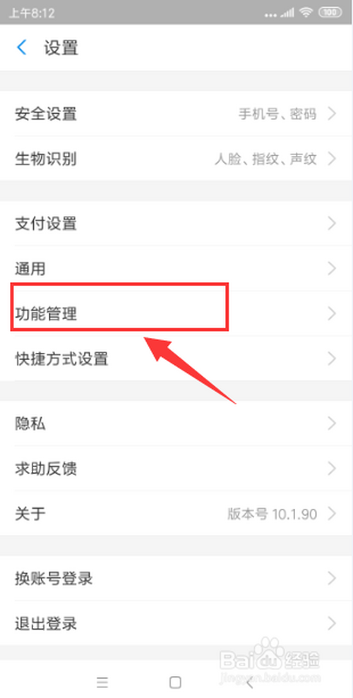 进入设置界面后,点击中心四周位置“功能办理”选项。