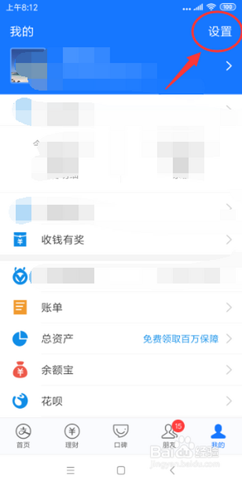 1.解锁手机进入支付宝后,依次点击右下角我的-右上角设置-功能办理;