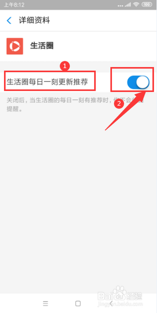 然后,找到“糊口圈每日一刻更新保举”这一栏,滑动右边开关按钮,封闭开关即可。