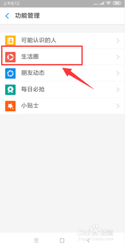 2.再点击糊口圈,进入页面后,滑动右边开关按钮,封闭开关即可。