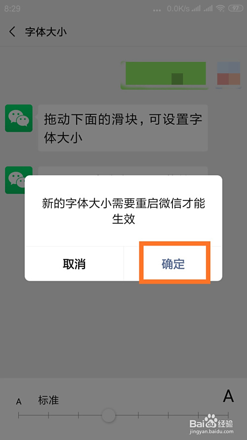 点窜至合适位置后点击返回,在呈现的提醒框中点击确定,微信主动重启后即可生效