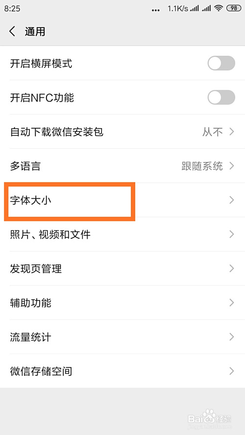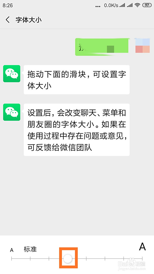 摆布滑动屏幕下方的白色小圆点,点窜字体巨细