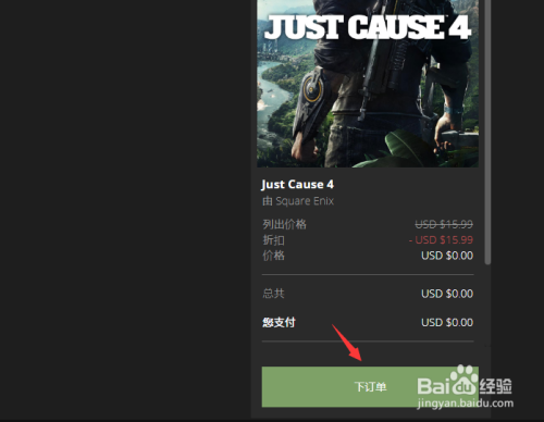 点击右下角处的“获取”,现实付费金额为0,点击“下订单”。