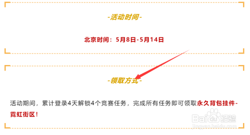 累计登录4天解锁4个竞赛使命,完当作所有使命即可领取永远背包挂件-霓虹街区!如下图所示。